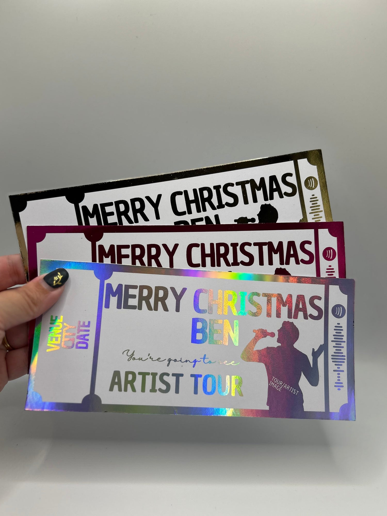 Make the big reveal unforgetable with a personalised concert ticket keepsake. Whether its a first gig or a dream artist, these oiled tickets transform a digital entry into a real, lasting memory.